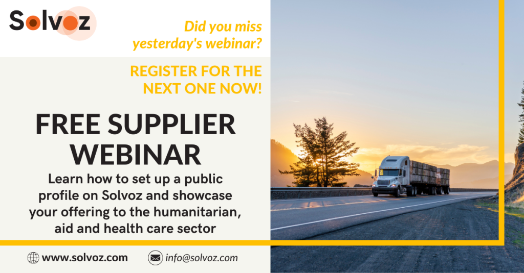 Want to learn more about the value of the new features for suppliers? Have a free public profile on Solvoz to expand your market access globally, or create a public catalogue displaying your products and services on Solvoz? Make sure to register for one of our forthcoming webinars.