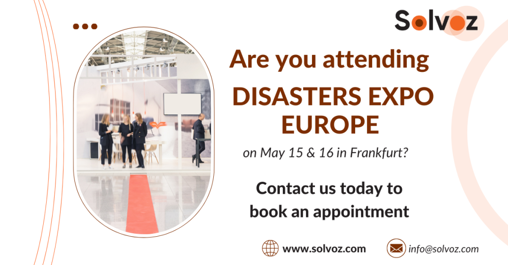 Interested to learn more about Solvoz and how we can partner or support? We look forward to our conversations and meeting Disasters Expo Europe this year!