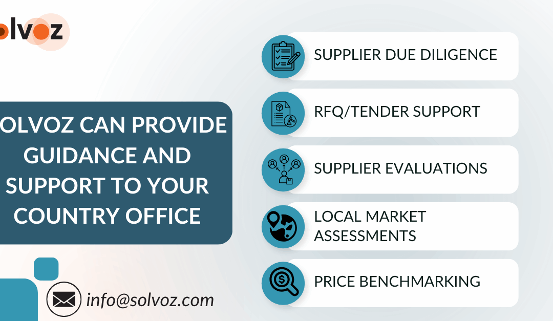 📍 Did you know that Solvoz can provide guidance and support to your country office? Our team comprises of global sourcing specialists as well as expert in-country consultants who can assist you with: