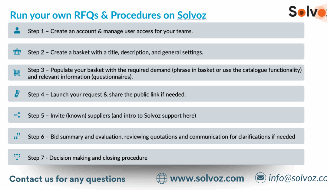 Is your organisation facing a procurement challenge you’re not sure how to address? Why not get started with Solvoz today to take advantage of our unique approach and cutting-edge technology! Reach out to us. We look forward to hearing from you!